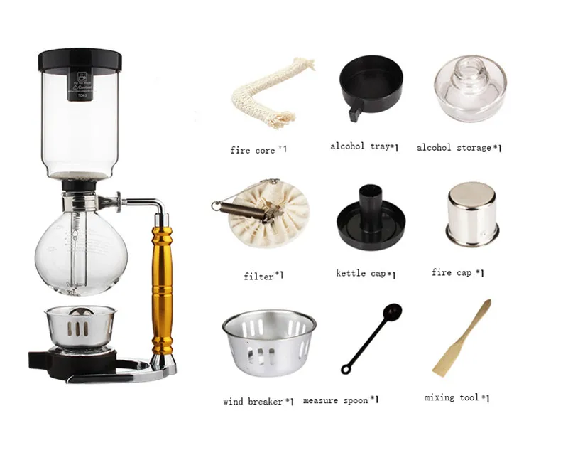 BEST QUALITY XMT-HOME Glass syphon coffee pot tea siphon manual coffee maker machine mini alcohol burner set