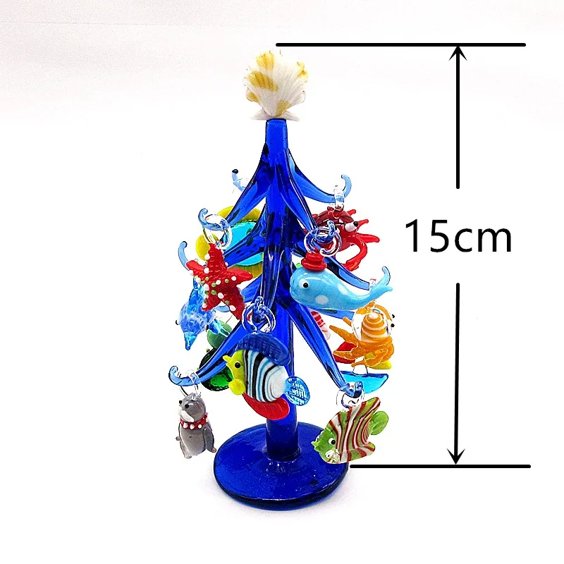 REVIEW TOP SELLER Handmade Dark blue Murano glass Christmas tree shape ornament home Aquarium Decoration with 12pcs M