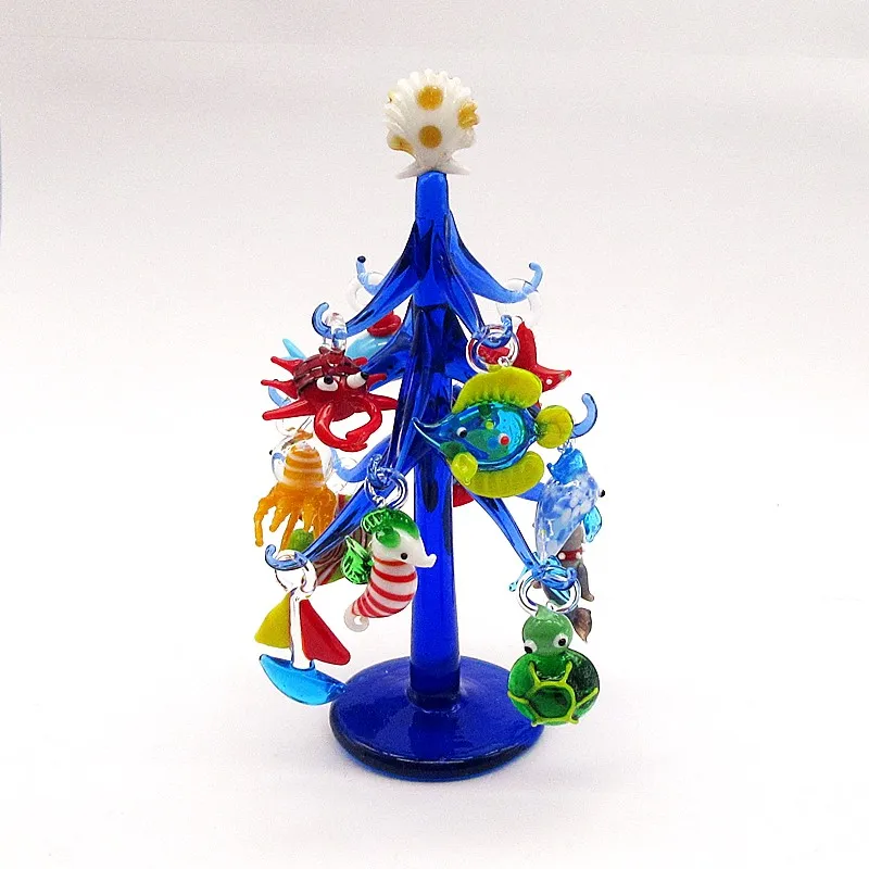 Best Seller Handmade Dark blue Murano glass Christmas tree shape ornament home Aquarium Decoration with 12pcs M