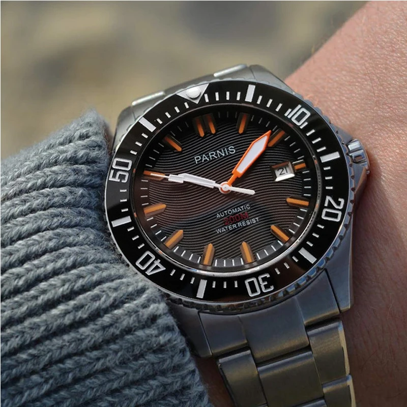 HOT SALE Parnis 44mm Automatic Diver Watch Waterproof 200m Metal Mechanical Men's Watches Sapphire Glass Top